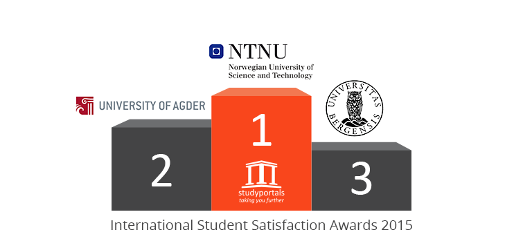 Studyportals would like to congratulate all universities and universities of applied sciences that won an award. Unlike university rankings, Studyportals’ International Student Satisfaction Awards are based on thousands of reviews and opinions from international students in Europe. Among the Norwegian universities that received sufficient reviews of international students to be eligible for the 2015 International Student Satisfaction Awards, a total of 3 universities received ratings ranging from “Very good” (at least 8 out of 10) to “Excellent” (at least 9 out of 10). A total of 165 international students reviewed their study experience in Norway. On average, universities in Norway received a score of 8.78, ranking 8th in this year’s awards session.